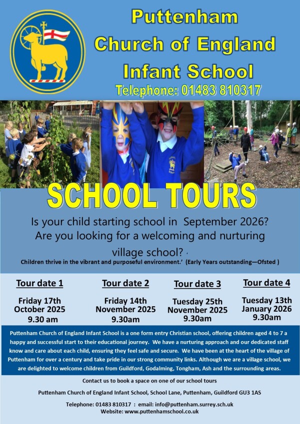 Please phone 01483 810317 or email the office info@puttenham.surrey.sch.uk to book onto a tour.